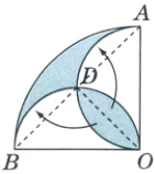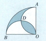8. 扇形 AOB 的半径是 6cm,扇形的半径是两个小半圆的直径。求阴影部分的面积。