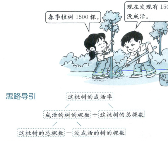 成活的树的棵数:$1500 - 150 = 1350$(棵),