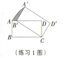如图,在矩形 $ ABCD $ 中,$ BC = 2 $,$ BC = 2AB $。将矩形 $ ABCD $ 绕点 $ C $ 旋转,得到矩形 $ A'B'CD' $,点 $ A $ 的运动路径为 $ \overset{\frown}{AA'} $,当点 $ B' $ 落在边 $ AD $ 上时,图中阴影部分的周长是_ 。