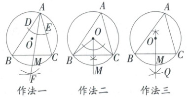 例1 [25·石家庄模拟] 是的外接圆,在弧上找一点,使点平分弧.对图中的三种作法,下列说法正确的是 ()