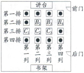 练习三 [25·石家庄模拟] 如图,16 个小方框代表 16 把椅子,其中黑色圆点表示已有人入座,小李和小王随机入座,根据要求,小李需要坐第二排,小王需要坐第三排,两人选择座位的可能性相同.