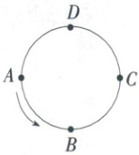 练习二 [25·邢台一模改编] 有三张卡片,分别标有 1,2,3,将它们洗匀后背面朝上放在桌上,$ A $,$ B $,$ C $,$ D $ 是圆的四等分点,如图,现通过抽取卡片的办法玩跑圈游戏,规则如下:若抽取卡片上的数字是几,就从图中点 $ A $ 的位置沿圆弧逆时针方向连续跑过几个 $ \frac{1}{4} $ 圆,第二次跑圈从第一次跑圈结束后的位置上开始,按照规则继续进行.