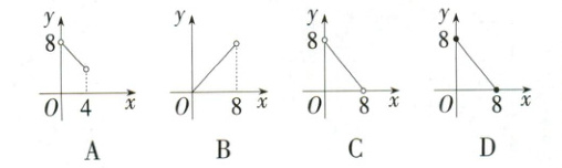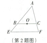 2. 如图,点O是$\triangle$AEF的内心,过点O作BC $//$ EF分别交AE,AF于点B,C,已知$\triangle$AEF的周长为8,EF = x,$\triangle$ABC的周长为y,则表示y与x的函数图象大致是()