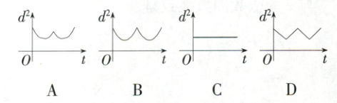 3. 如图是一种轨道示意图,其中A,B,C,D分别是正方形的四个顶点,现有两个机器人(看成点)分别从A,C两点同时出发,沿着轨道以相同的速度匀速移动,其路线分别为A→D→C和C→B→A.若移动时间为t,两个机器人之间距离为d,则$d^{2}$与t之间的函数关系用图象表示大致为()