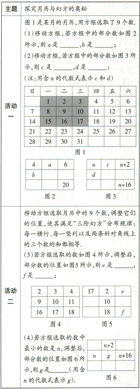 3. [25·湖北]幻方起源于中国,月历常用于生活,它们有很多奥秘,探究并完成填空.