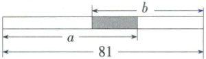 例2 [25·河北15题]甲、乙两张等宽的长方形纸条,长分别为$a,b$.如图,将甲纸条的$\frac{1}{3}$与乙纸条的$\frac{2}{5}$叠合在一起,形成长为81的纸条,则$a + b=$.