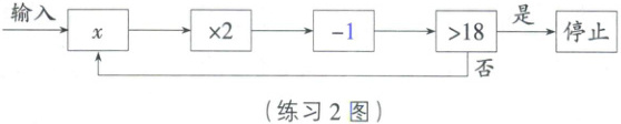 练习二 运算程序如图所示,规定:从“输入一个$x$值”到“结果是否大于 18”为一次程序操作,如果程序操作恰好进行了 2 次后停止,那么满足条件的$x$的最大整数值为 .