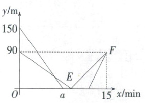 把E(9,0),F(15,90)代入,得$\begin{cases}9k + b = 0\\15k + b = 90\end{cases}$,解得$\begin{cases}k = 15\\b = -135\end{cases}$,