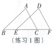 练习一 如图,已知AB//DE,AB=DE,BE=CF,且点B,E,C,F在同一条直线上.求证:∠ACB=∠DFE.