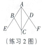 练习二 [25·福建]如图,点E,F分别在AB,AD的延长线上,∠CBE=∠CDF,∠ACB=∠ACD.求证:AB=AD.