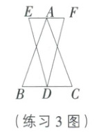 练习三 如图,已知在△ABC 中,AB=AC,D 是 BC 的中点,过点 A 的直线 EF//BC,且 DE=DF。若 AE=2,则 AF=。