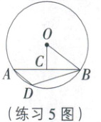 练习五 如图,在⊙O 中,C 为弦 AB 的中点,连接 OC,OB,D 是$\widehat{AB}$上任意一点,连接 AD,BD,若∠ADB=126°,则∠COB 的大小为 ()