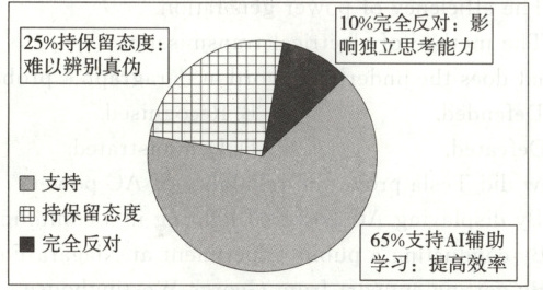 61. 假设你是实验中学的校学生会主席李津。最近你所在的研究性学习小组围绕"AI 对高中生学习的影响"这一课题,对高三年级 500 余名同学进行了问卷调查,以下饼状图是调查结果: