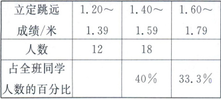 1. 体育课上某班同学练习立定跳远的成绩如下表,请把表格填写完整。(除不尽的百分号前保留一位小数)