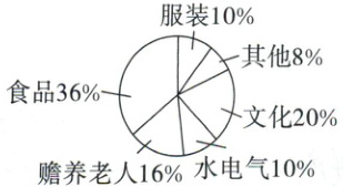 (2)若该户家庭本月的支出是2000元,请你计算食品和赡养老人共支出多少元?