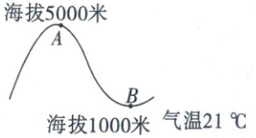 2. 科学研究表明,海拔每增加1千米,气温下降6℃,从下图中你能判断出点A的气温是( )。