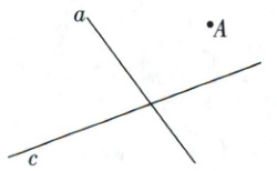 1. 过 A 点画直线 a 的垂线和直线 c 的平行线。