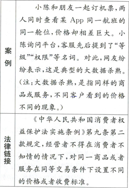 (2) 有学生认为:“大数据杀熟是网络平台发展的正常现象。”对此,你怎么看? (6分)