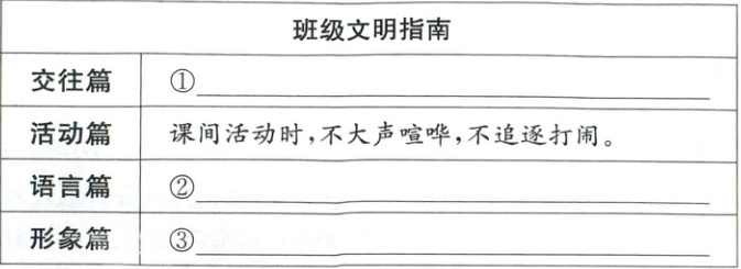(2)请你将班级文明指南中的交往篇、语言篇和形象篇补充完整。(6分)
