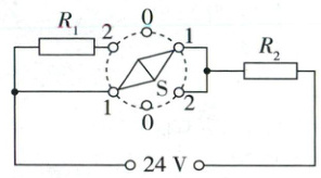 (1)当旋钮开关S接1时,只有R₂接入电路,由欧姆定律可得,R₂的阻值R₂=$\frac{U}{I}$=$\frac{24V}{2A}$=12Ω