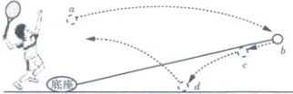 C.网球从b到c的过程中,网球的动能转化为弹力线的弹性势能