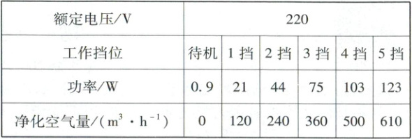 (3)空气净化器位于4挡正常工作时,净化空气量为$500m^3/h$