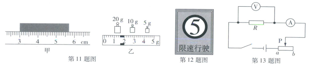 13. 如图所示,闭合开关,将滑片$P$向$b$端滑动,电压表示数