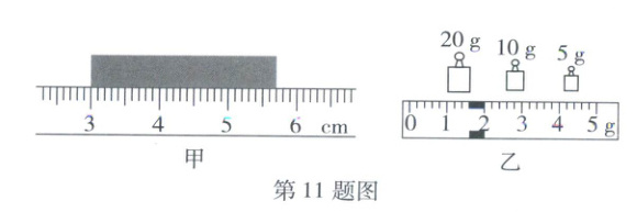 $cm$;用托盘天平测量物体的质量,按照正确的实验步骤进行操作,当天平平衡时,右盘中砝码的情况和游码在标尺上的位置如图乙所示,则物体的质量为36.6