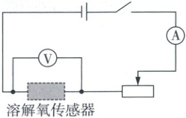 14. 水中溶氧量是水产养殖的一项关键指标。小红利用溶解氧传感器设计了自动充氧装置,其中监测电路如图所示,电源电压保持不变,溶解氧传感器的阻值随水中溶氧量的降低而减小。闭合开关,当溶氧量降低时