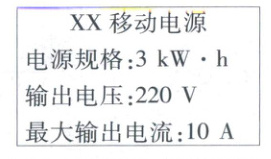12. 某商家销售的移动电源相当于大型“充电宝”,其铭牌如图所示。顾客咨询:“该移动电源可以供2.5 kW的用电器正常工作吗?”客服回复:“没问题,这是3 kW·h的,3 kW的用电器都可以正常使用。”该客服