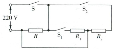 (1)只闭合开关S,热水器处于挡位1的工作状态,此时只有电热丝R工作,由P = U²/R得,电热丝R的阻值R = U²/P₁ = (220V)²/220W = 220Ω