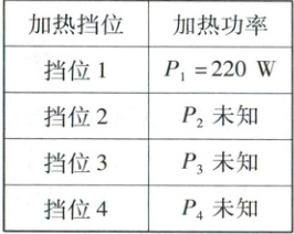 挡位3的加热功率P₃ = P₁ + P₁ = 220W + 2200W = 2420W