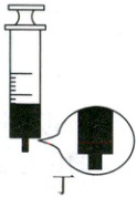 Pa。(取$ g = 10 $N/kg)(4) 交流评估时,小明回想起,测量液态合金体积过程中,注射器零刻度线前端接口处,还有一小部分液体,如图丁所示,这部分液态合金体积未被计入,会导致密度的测量结果