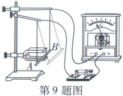 9. B “探究导体在磁场中运动时产生感应电流的条件”实验研究的是电磁感应现象。