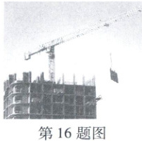 16. 如图所示,塔吊将重900N的货物匀速提高1m,额外功是2100J,塔吊做的有用功是