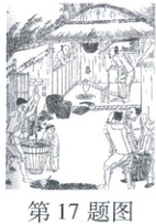17. 将竖木举高后使其自由落下应用了重力势能和动能的转化(或碓头做得很尖应用了减小受力面积可以增大压强;碓头做得很重应用了增大压力可以增大压强;碓头打在谷物上用于脱壳和粉碎应用了力可以使物体发生形变,合理即可)