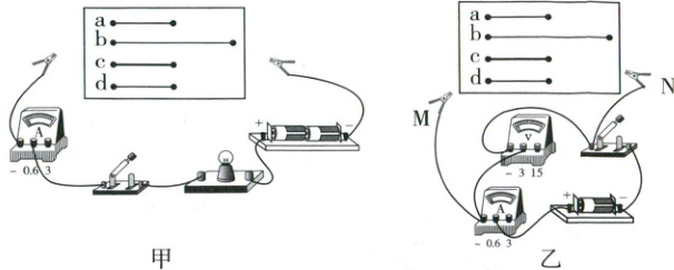 22. (9分)在“探究导体电阻的大小跟哪些因素有关”实验中,某兴趣小组设计了如图甲所示的实验电路。四根电阻丝中,a、b、c是镍铬合金丝,d是铜丝,a、c、d长度相同,a、b、d横截面积相同。