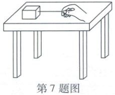 7. 如图所示,用细绳水平拉着木块沿水平桌面向右做匀速直线运动,下列各力中与细绳对木块的拉力是一对平衡力的是(