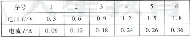 (2)电路连接正确后,闭合开关,探究电阻一定时电流与电压的关系,得到下表所示的实验数据。请在图乙中完善坐标系,根据下表数据在坐标系中描点,从图中看出序号为
