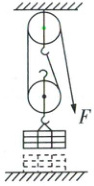 24. (8分)家电“国补”政策拉动了消费,给市民带来了实惠。某小区业主购买了一台100英寸(1英寸=25.4毫米)的电视机,由于楼梯、电梯空间不足,工人师傅采取室外吊装方式上楼。已知电视机及包装箱的总重力为720N,竖放时与水平地面的接触面积为$6×10^3cm^2$。吊装时工人师傅用滑轮组在100s内将包装箱匀速提升20m,示意图如图所示。每个滑轮重80N,不计绳重及摩擦,g取10N/kg。求: