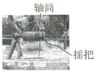 13. 《物原》记载“史佚始作辘轳”。辘轳主要由轴筒、摇把、绳和桶构成。如图所示, 人们借助辘轳从井中汲水时, 转动摇把, 使绳子在轴筒上不断叠绕, 从而将水桶从井中提出。借助辘轳汲水时, 下列有关说法不