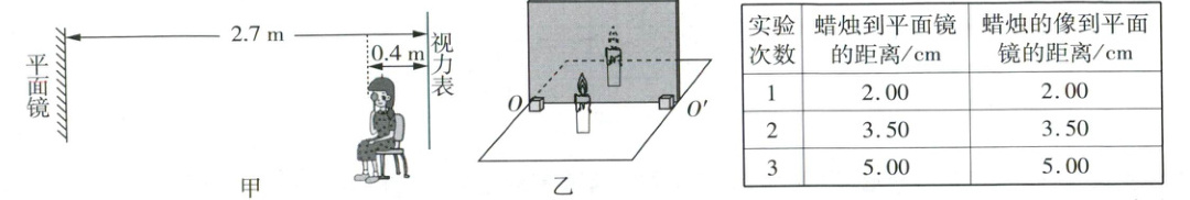 的位置。(3)测量蜡烛和像到平面镜的距离,记录在表中。在三次实验中,未点燃的蜡烛都能和点燃蜡烛的像重合,表明像和物的大小