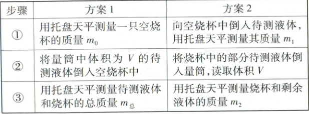 【方法一】用托盘天平和量筒测量液体的密度,方案如下表。
