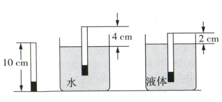 ③将密度计从水中取出并擦干,然后放入盛有被测液体的烧杯中(没有碰到杯底),静止后测出密度计露出液面的长度是$2\ cm$;