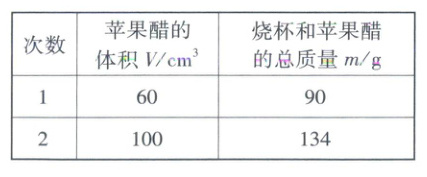 5. 丹丹想测出苹果醋的密度,她利用电子秤和烧杯进行了两次实验,记录的数据如上表所示,下列说法正确的是 (