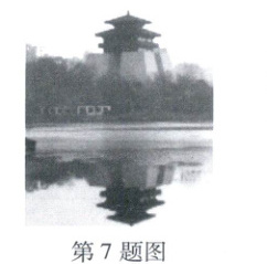 7. 如图所示是镜头下的枣庄市东湖公园内的中兴阁。下列说法正确的是 (