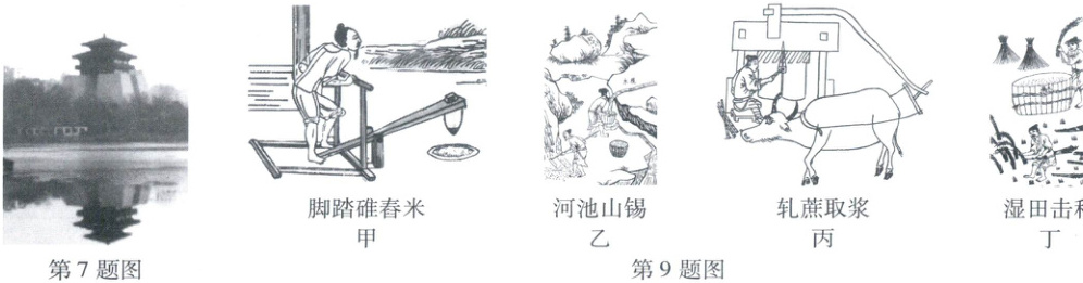 9. 新趋势 传统文化 以上四图节选自我国古代科技巨著《天工开物》,下列说法正确的是 (