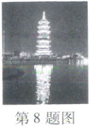 8. 如图所示是曹州古城的夜景,每当暮色降临,流光溢彩、美不胜收的夜景尽收眼前。关于此情景下列说法正确的是
