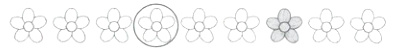 上图中一共有()朵花,把右起第3朵花涂上颜色,把左起第4朵花圈起来,圈起来的花与涂色的花之间有(