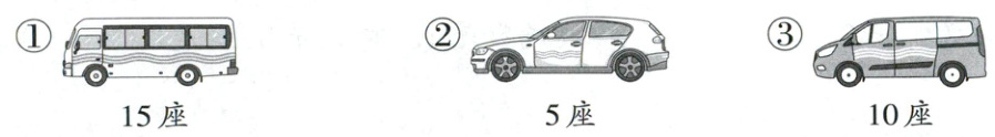 4. 我国航天事业发展迅猛,为了帮助学生更好地了解航空航天知识,二(1)班的2位老师带9名学生去北京航空航天博物馆参观研学,选车辆(